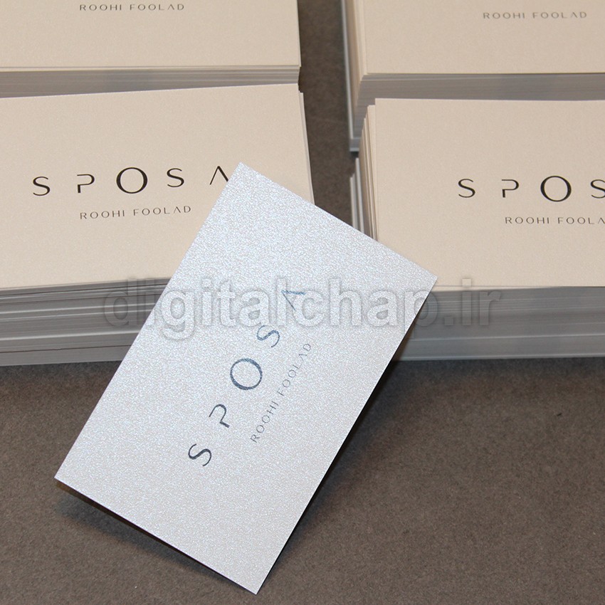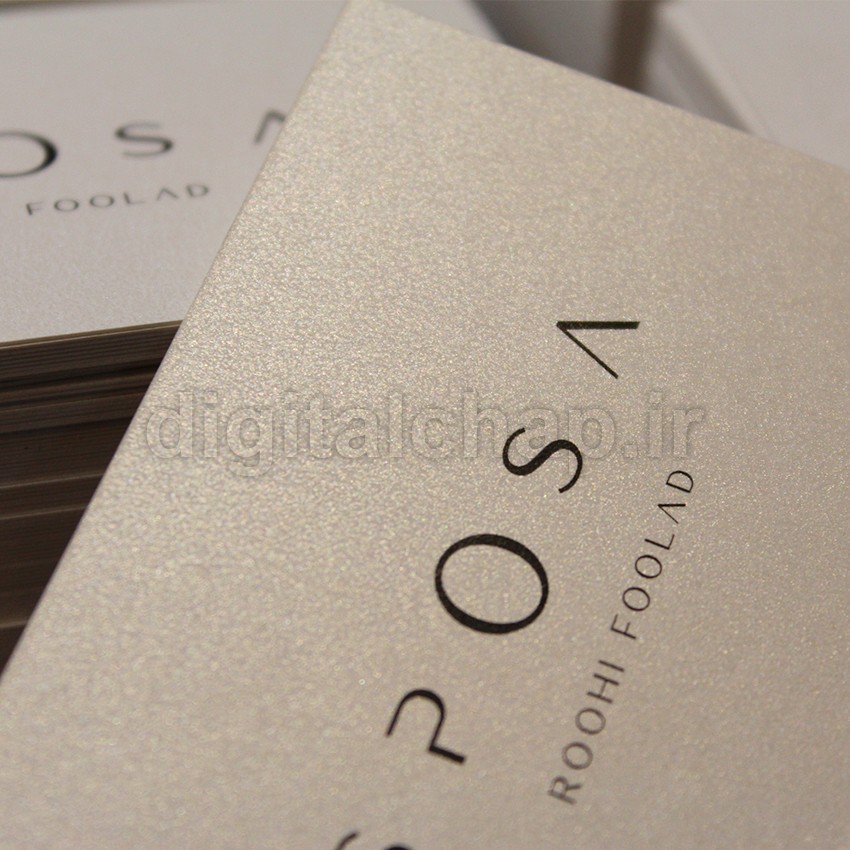 این کارت ویزیت درخشان و دارای نقاط براق صدفی در سطح کاغذ میباشد ..